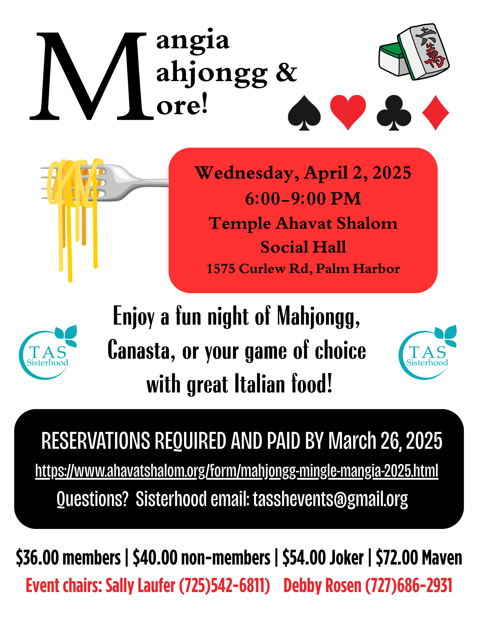 Join our Sisterhood for Fun and Friendship! Get ready for an exciting evening filled with laughter, camaraderie, and the thrill of competition! We invite you to join our Sisterhood as we dive into a night of games and connection while enjoying delicious Italian cuisine.