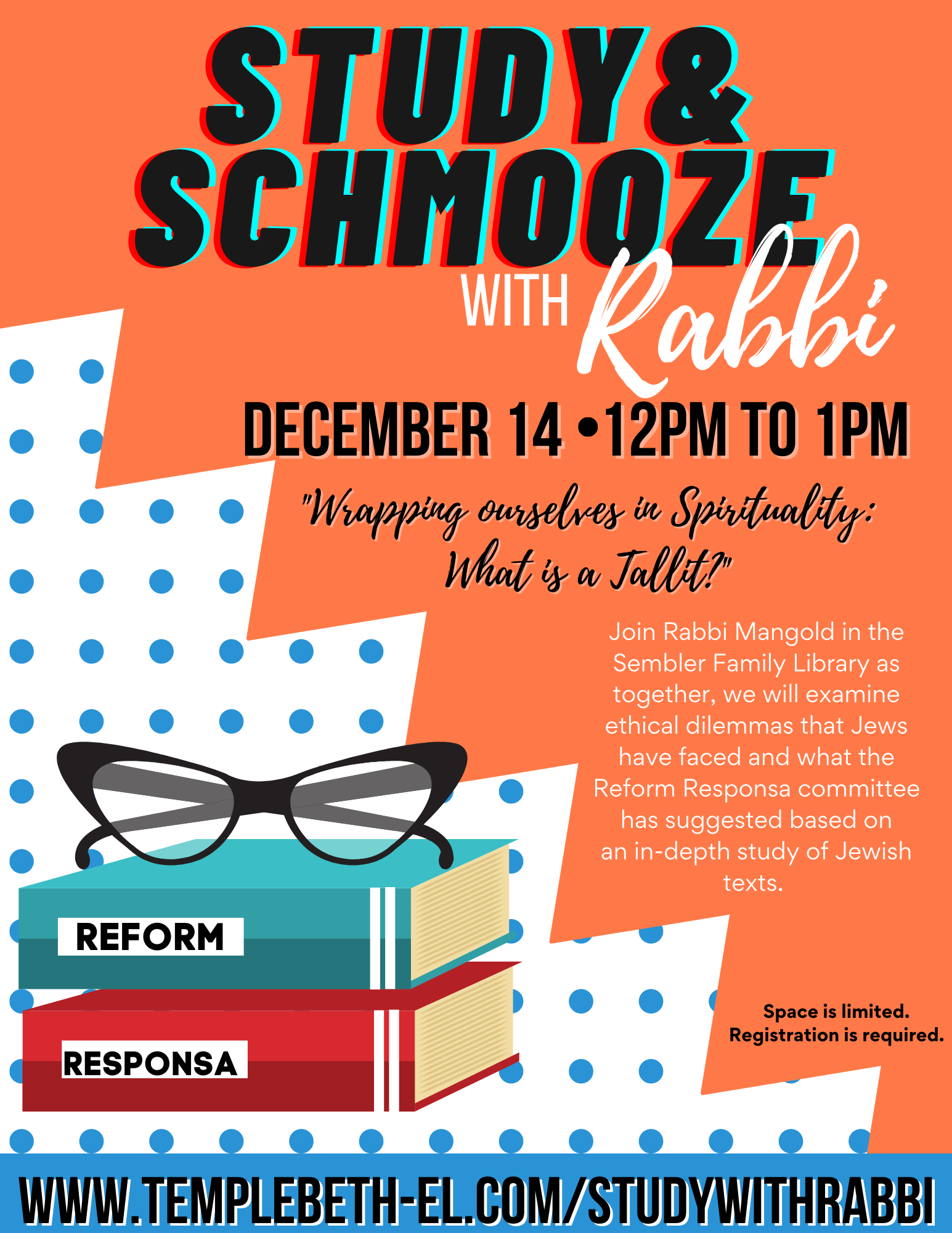 Registration is required due to limited capacity. Masks are required indoors for anyone age 3 and older regardless of vaccination status. Register at www.TempleBeth-El.com/StudywithRabbi.